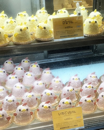 ショーケースには、ぴよりんがずらりと並んでいます。